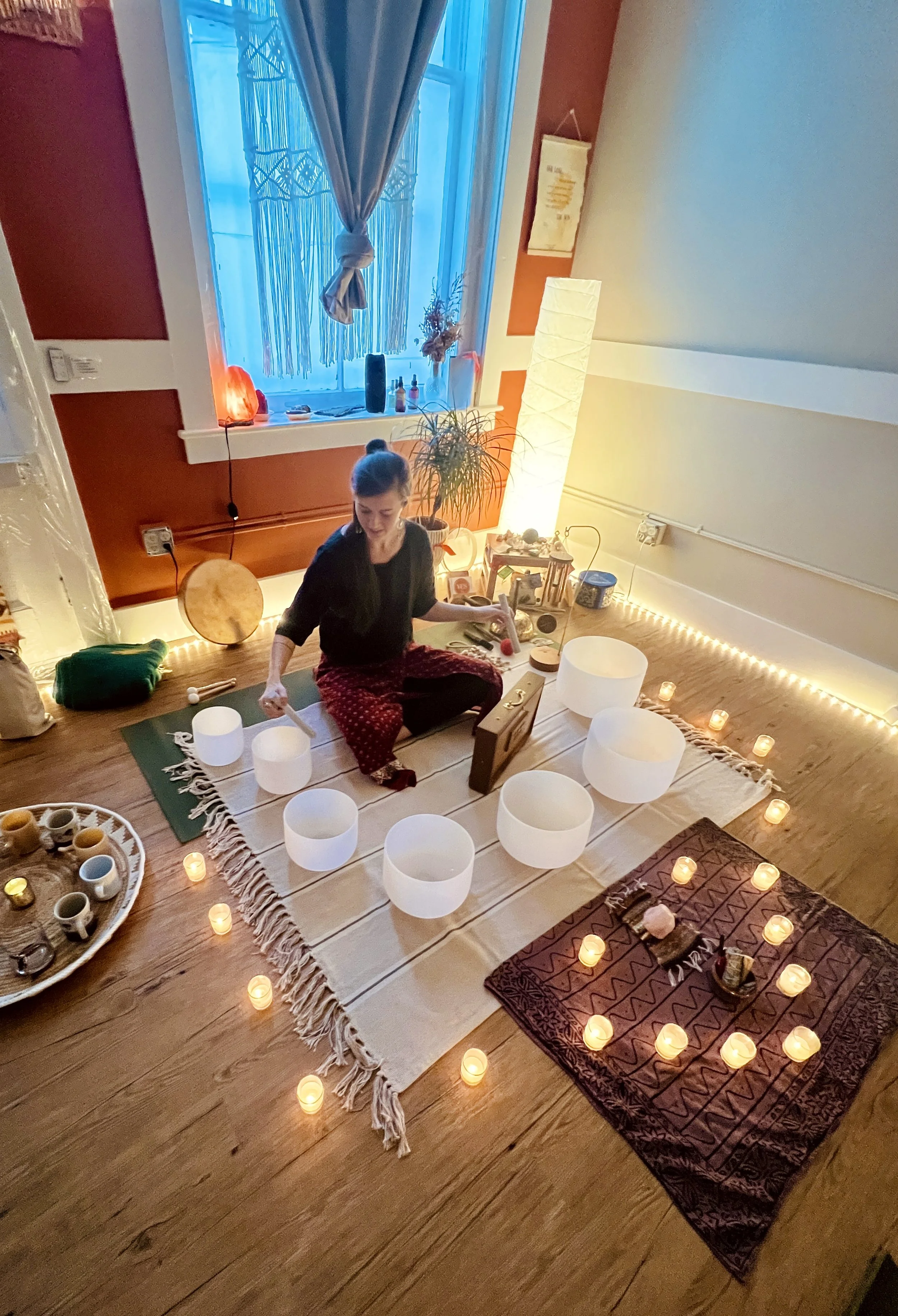 **PLEASE NOTE: Be sure to bring your own materials for a super cozy setup for the Sound Bath. It is recommended to bring a yoga mat, bolster or pillow for under knees, and a blanket for on top of you. You may also bring an eye pillow, pillow for under your head, or anything else you need to be super cozy & comfortable!